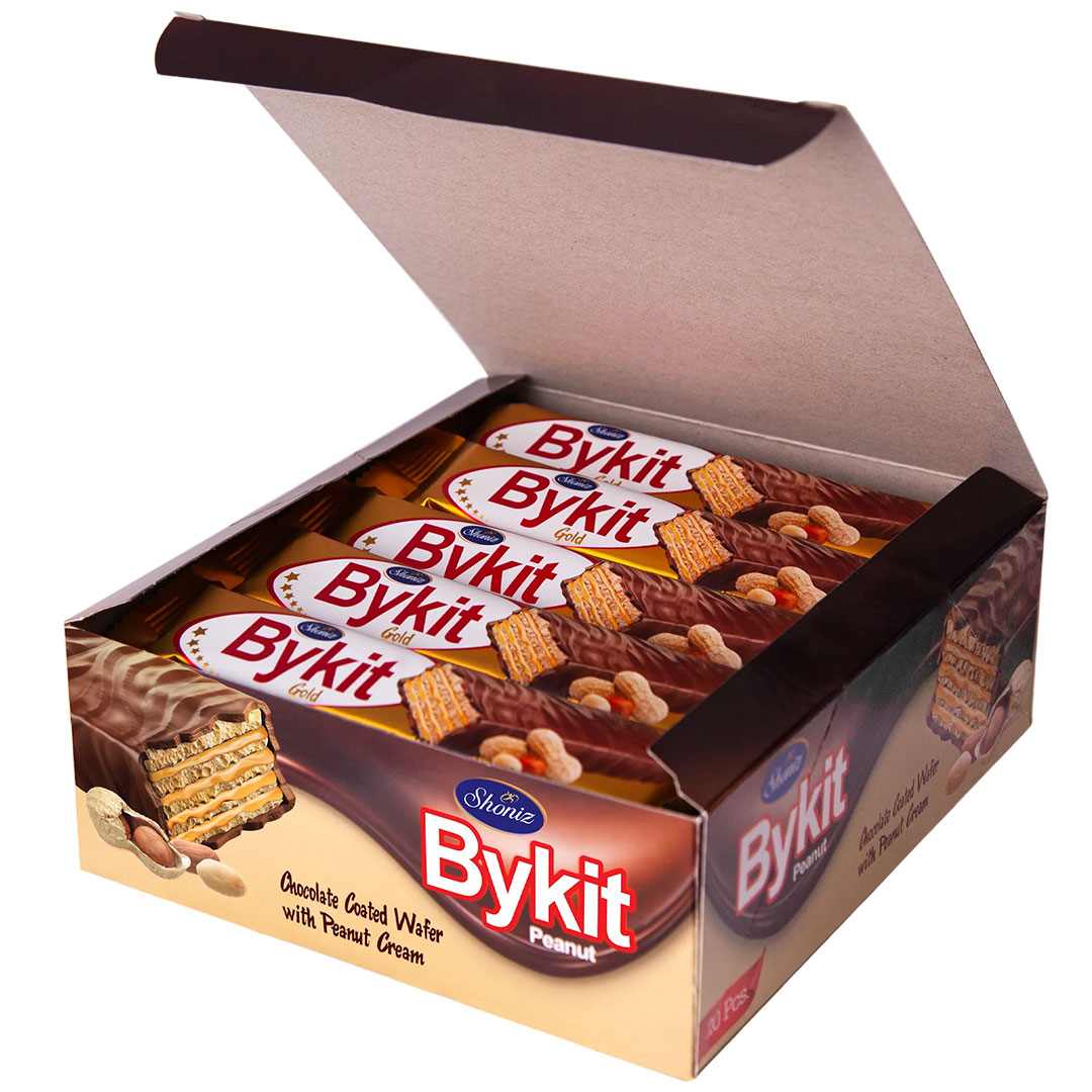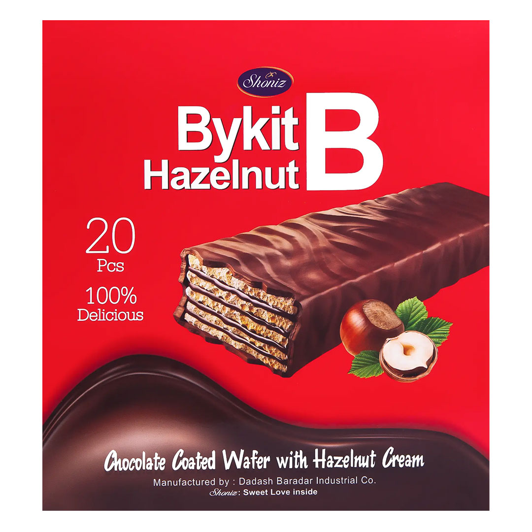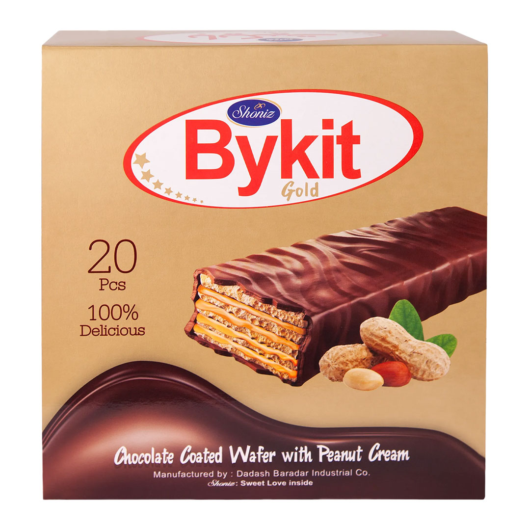 ByKit is a chocolate wafer produced by Shoniz Company. This wafer has become quite popular due to its delicious taste and crispy texture. With layers of wafer covered in rich chocolate, ByKit provides a delightful, sweet experience for chocolate lovers.